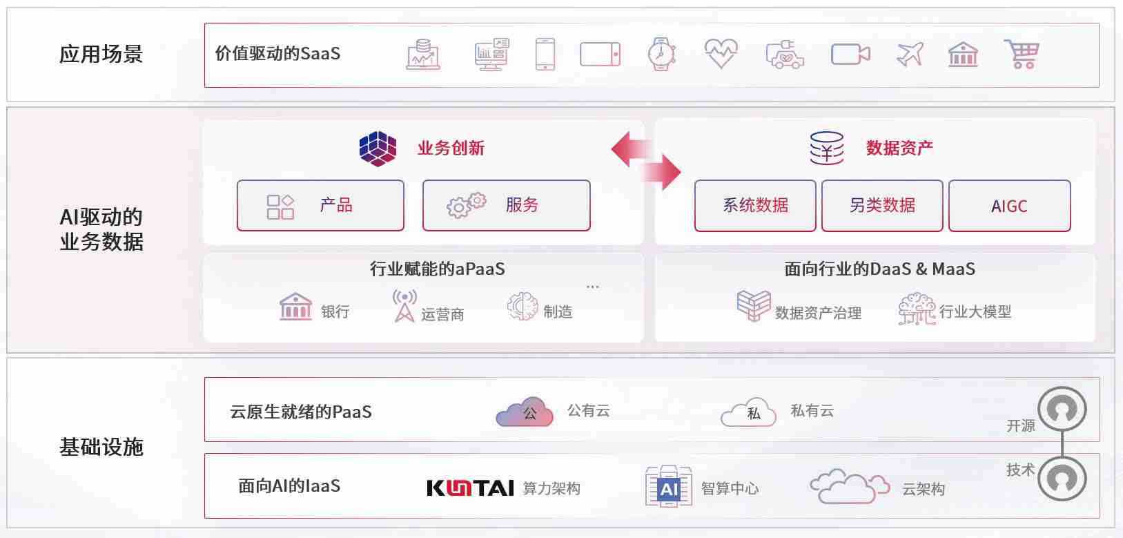 数字时代,,,,围绕企业数字化转型的关键要素,,,,ok钱包数码开创性的提出数云融合战略和技术体系框架,,,着力在云原生、、、、数字原生、、AI原生和信创产业上架构产品和服务能力,,为处在不同数字化转型阶段的快消零售、、汽车、、、金融、、医疗、、政企、、教育、、运营商等行业客户提供泛在的敏捷IT能力和融合的数据驱动能力,,,,构建跨界融合创新的数字业务场景和新业务模式,,,,助力企业级客户建立面向未来的核心能力和竞争优势,,,全面推动社会的数字化、、、智能化转型升级。。